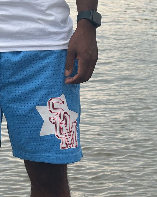 Navy Blue "Art Heals Pain" Mesh Shorts